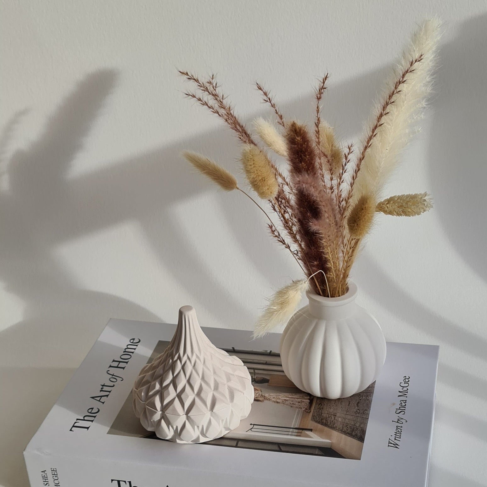 With a dome-like lid and carved geometric base, it draws inspiration from the silhouettes of traditional minarets and the craft of hand-carved stone. Each curve and facet reflects the balance between heritage and modern simplicity.