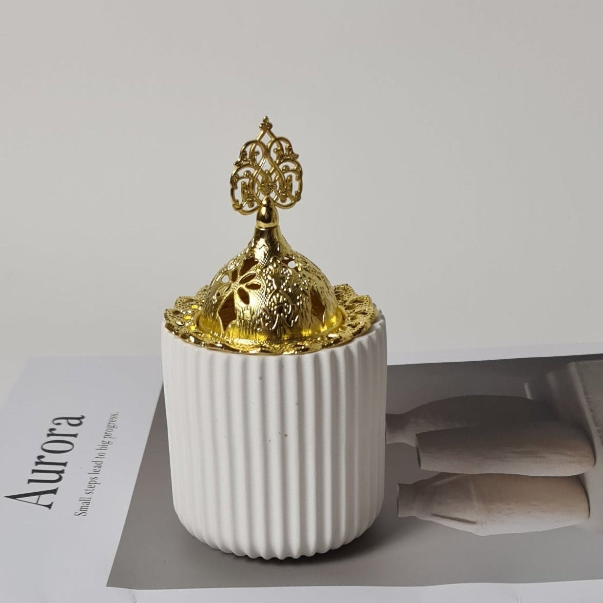 Designed to hold bukhoor or incense, the piece transforms once the dome is removed, revealing a heat-resistant vessel that can also be used for keepsakes or styled as a decorative jar.