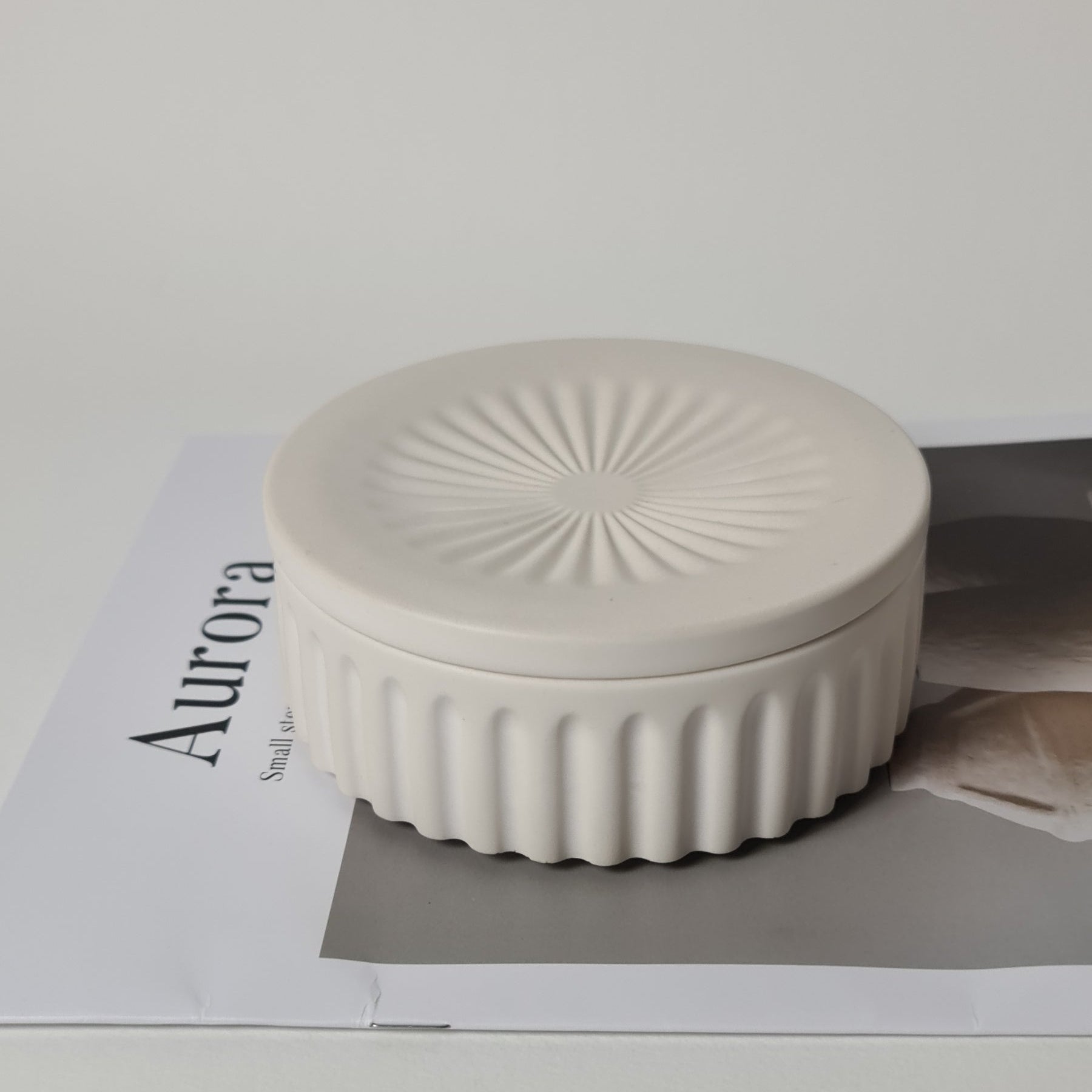 Hand-cast in smooth, weighty stone, it blends heritage and modern design with ease. The ribbed base and radial lid bring gentle order to your space, offering calm, unity, and focus.